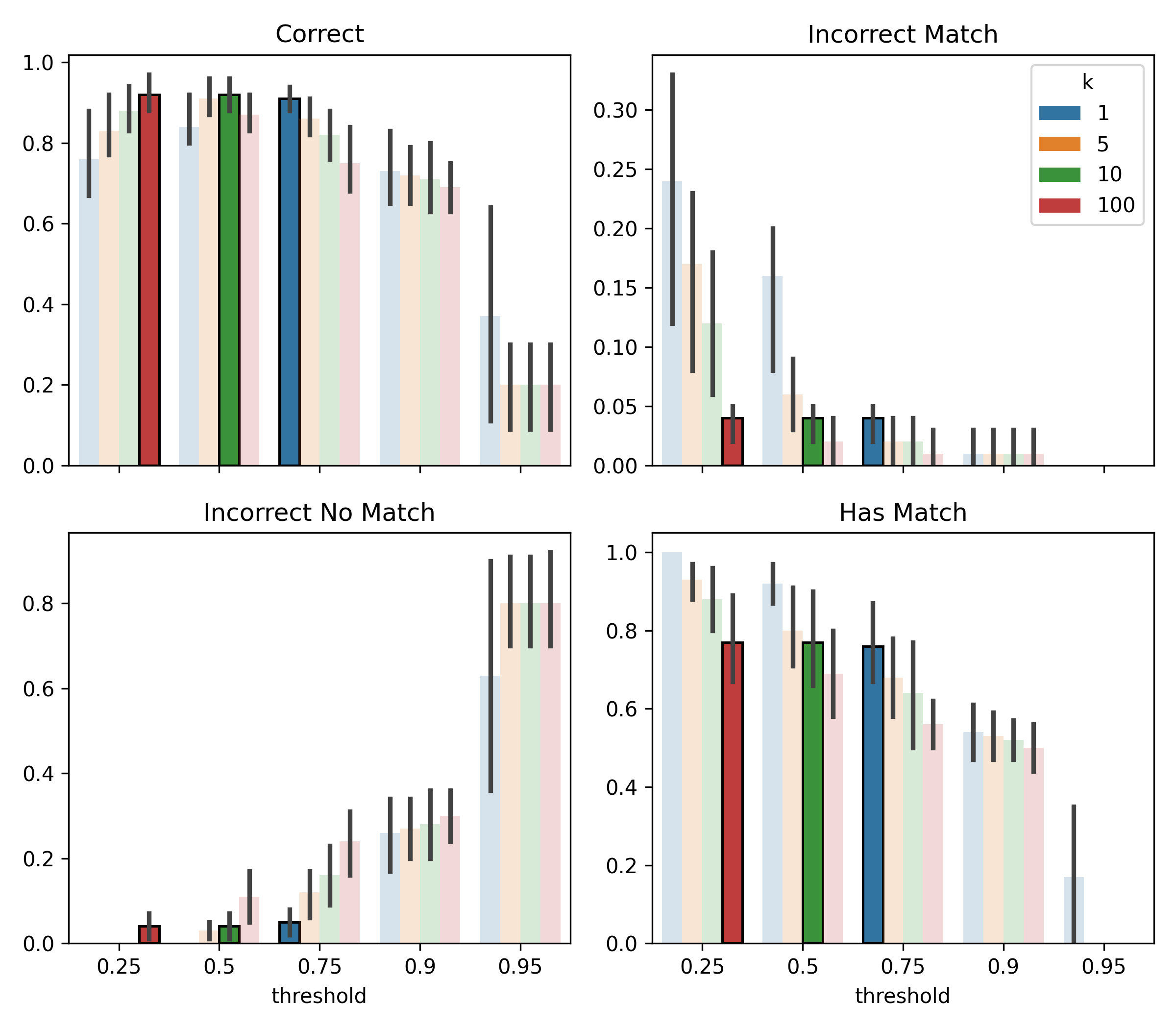No. In hindsight this was terrible for a couple of reasons. First, I tuned the threshold by skimming the output since I didn’t have any manually matched profiles. Second, we link to the first review profile above the threshold, not the highest. This is sensitive to ordering. A simple improvement and what I ended up using is to consider only the most probable predicted match: