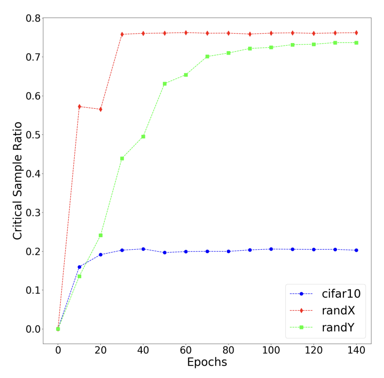 The experiment is performed with the CIFAR10 dataset, a noisy input version RandX, and a noisy label version RandY. We first define dataset wrappers to implement the noisy variants. Note that for epoch-to-epoch consistency we determine which examples to corrupt at initialization.