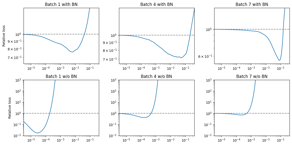for (batch, rel_losses), ax in zip(with_bn.items(), axs[0]):