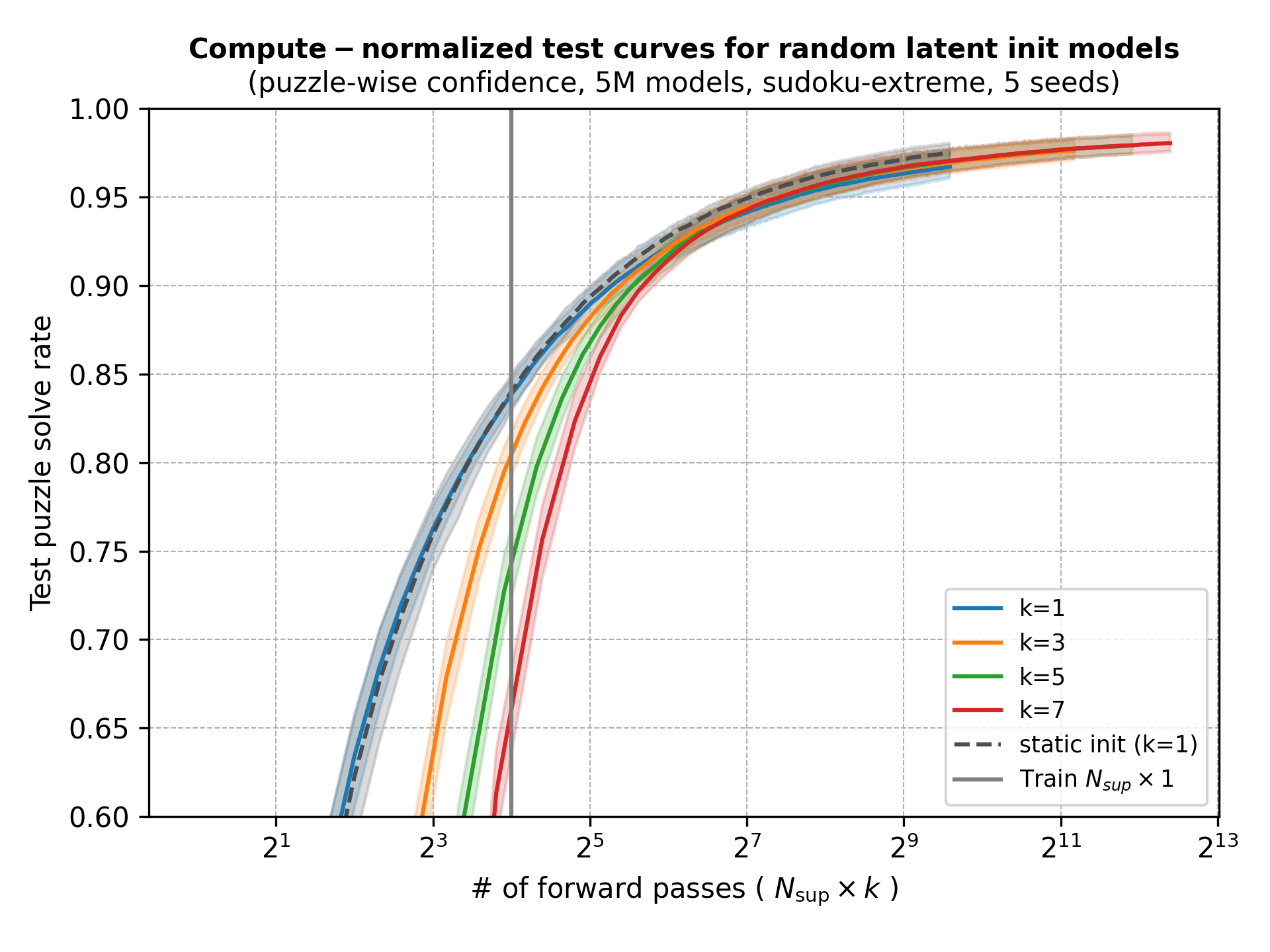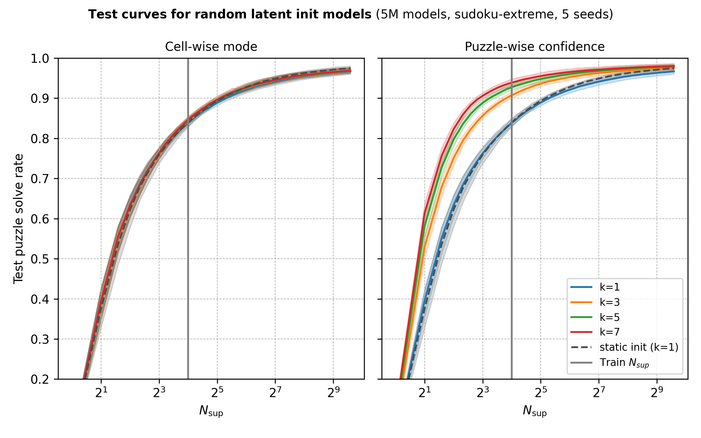 - These posts found that simply increasing \(N_\text{sup}\) at test time increases sudoku performance from ~87% to ~96%.
