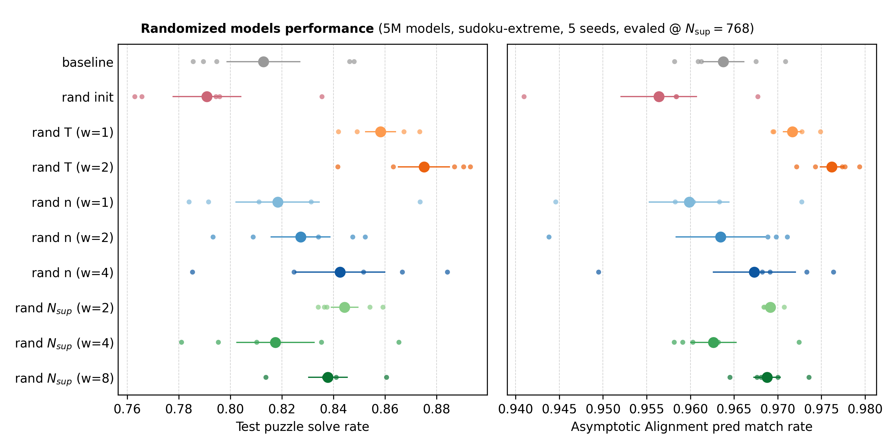 - These posts found that simply increasing \(N_\text{sup}\) at test time increases sudoku performance from ~87% to ~96%.